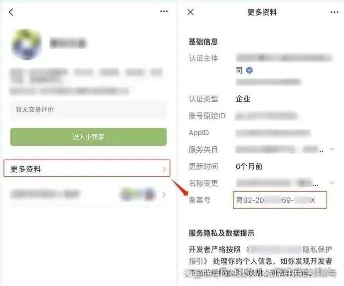 9、小程序成功发布上线后,小程序备案号将自动展示在小程序更多资料页,无需***自行悬挂。示例如下: