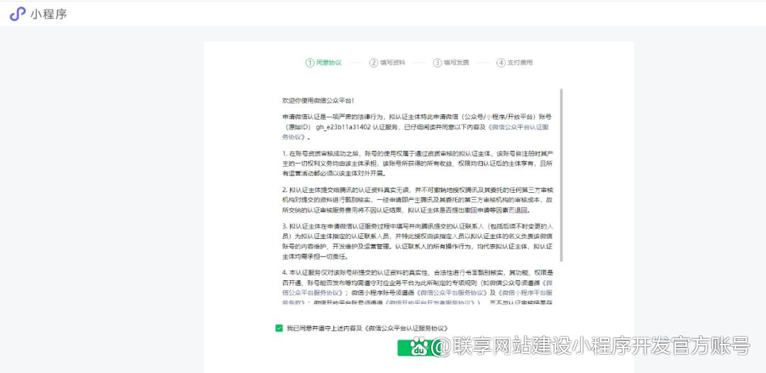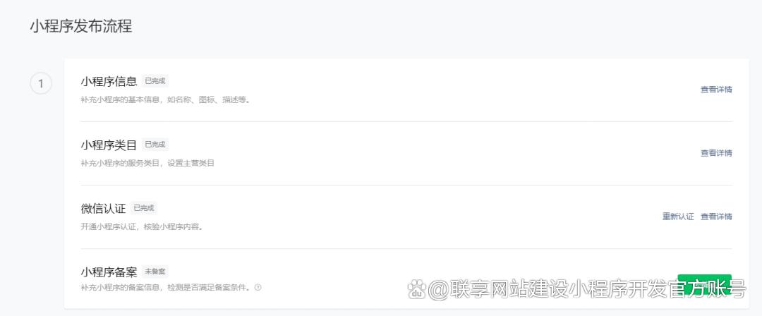 7、认证通过后,即可填写小程序信息和小程序类目。