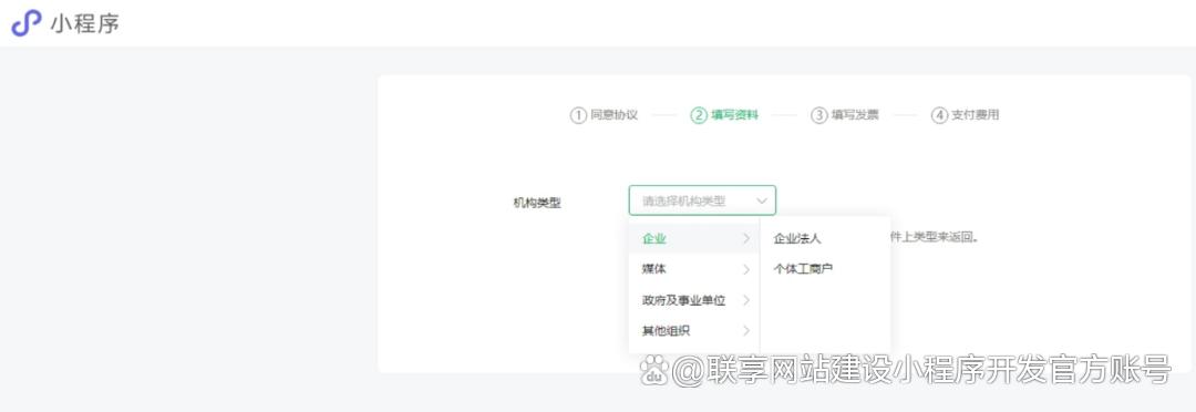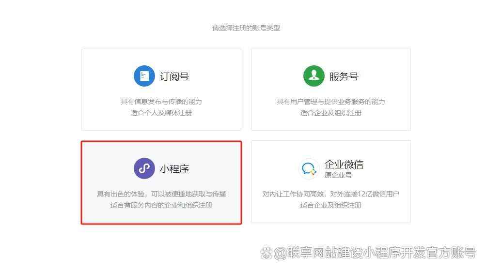3、选择“小程序”,点击进入下一步。
