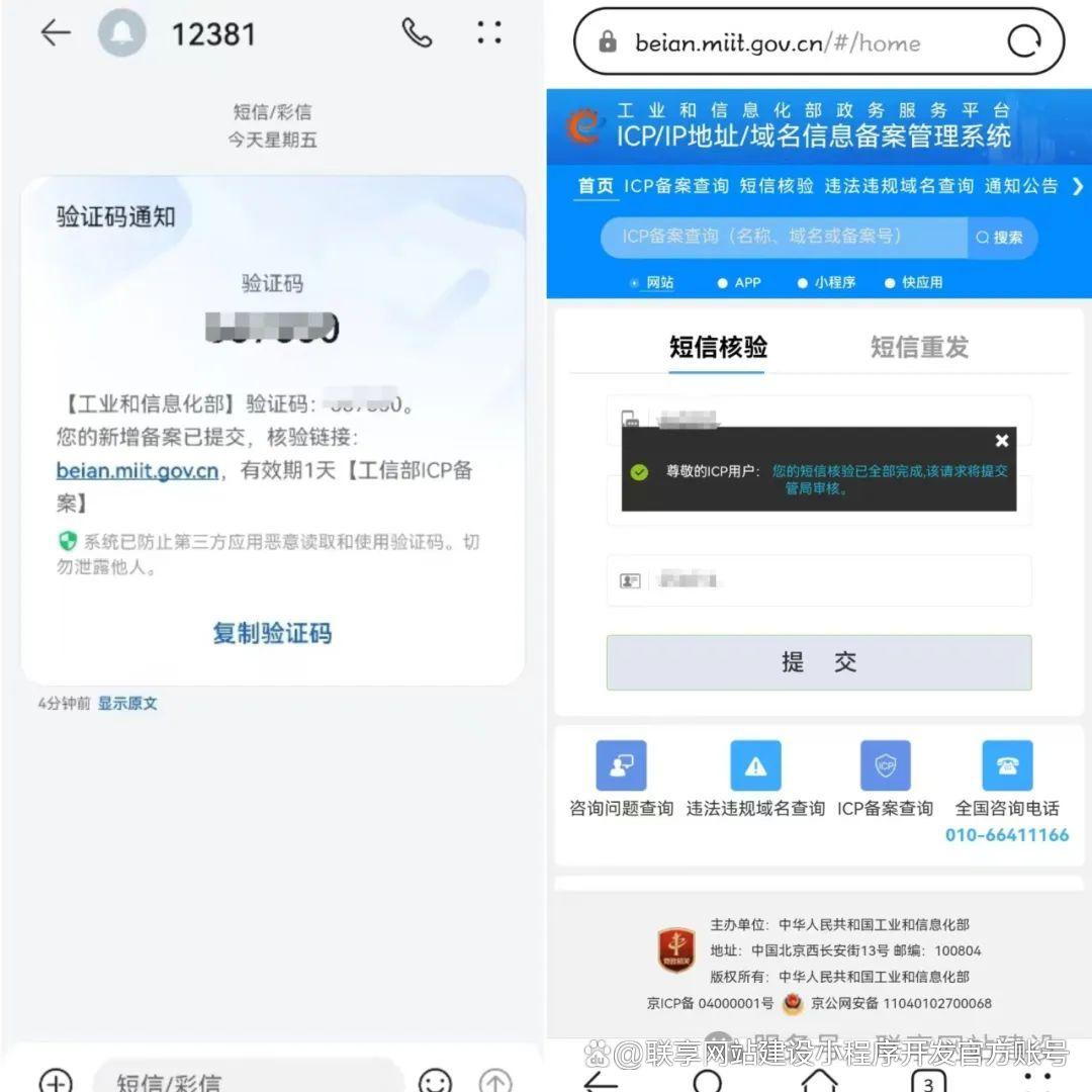 注:短信核验要在24小时内完成,否则会被工信部自动驳回,需要到微信公众号平台重新提交备案。