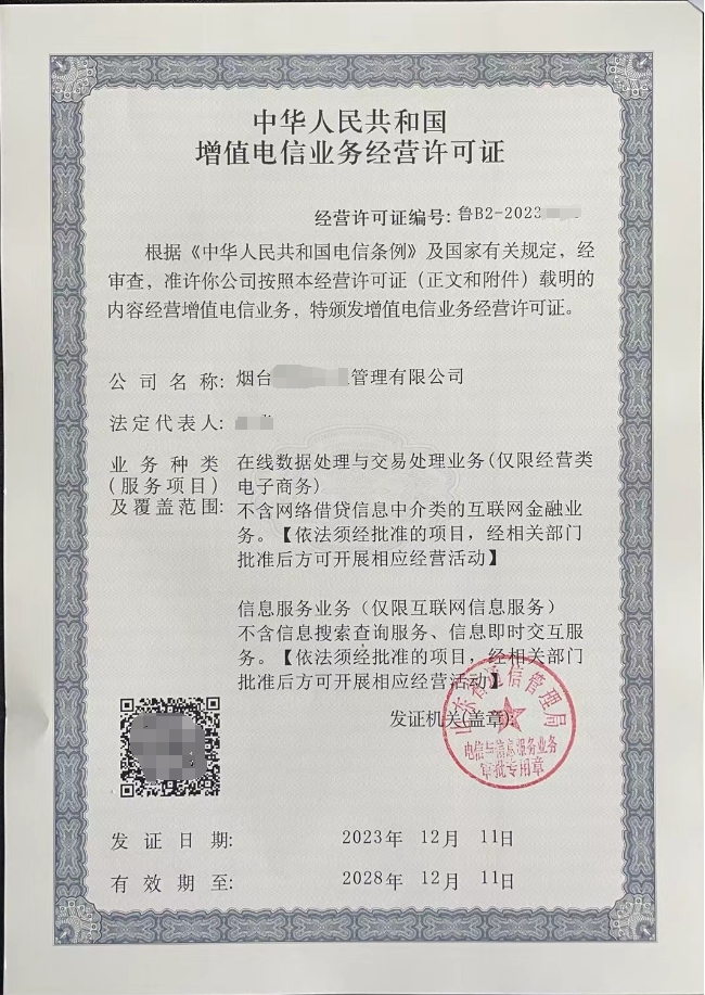 • 营业执照副本彩色扫描件:需在有效期内,经营范围含第二类增值电信业务,无经营异常,加盖公司公章;