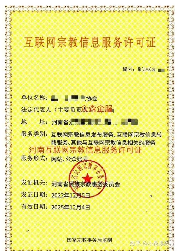 我们办理过的各省互联网宗教信息服务许可证部分案例